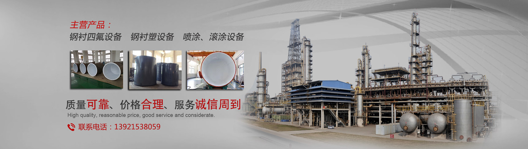我公司專業生產防腐設備,主要產品有:鋼襯四氟、鋼襯四氟儲罐、反應釜內襯四氟、鋼襯四氟管道,四氟換熱器、PTFE襯里設備、鋼襯塑儲罐、鋼襯塑管道、攪拌槳等等。產品可應用于化工、氯堿、海水淡化、印染、顏料、儲運、電廠、稀土、冶金、電子、制藥、釀造等行業...